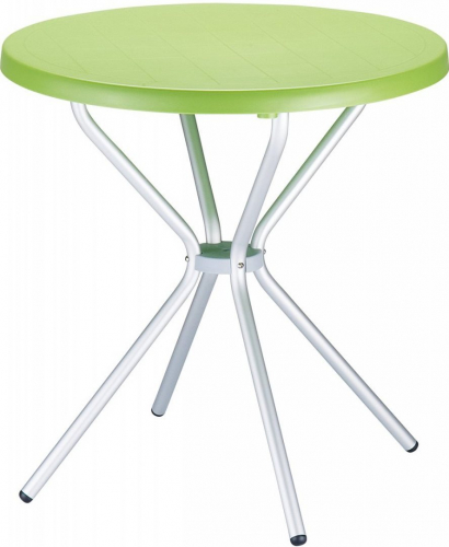 Круглый пластиковый стол Elfo со столешницей из перерабатываемого полипропилена и ножками из анодированного алюминия. Благодаря алюминиевому каркасу, столы Elfo устойчивы и и могут использоваться на открытом воздухе.