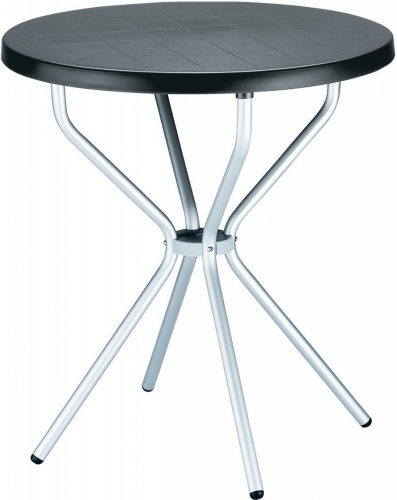 Круглый пластиковый стол Elfo со столешницей из перерабатываемого полипропилена и ножками из анодированного алюминия. Благодаря алюминиевому каркасу, столы Elfo устойчивы и и могут использоваться на открытом воздухе.