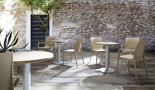 Коллекция Tkitt - столы, которые подходят для использования на открытом воздухе. Столешницы выполнены из технополимера в разных формах и размерах, которые комбинируются с основанием из металл-технополимера и колонной из анодированного алюминия. Металлические столы надежны, прочные, имеют привлекательный внешний вид. Специальное эпоксидное порошковое покрытие порошка используется во многих изделиях Gaber®, благодаря чему достигается превосходная стойкость к атмосферным воздействиям.