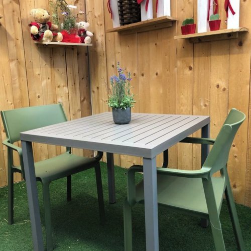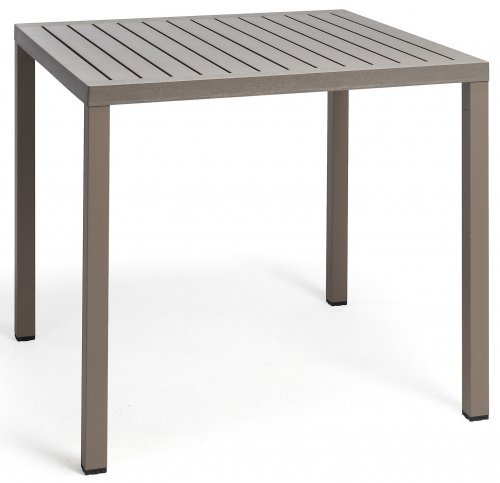 Квадратный стол Cube 80 подходит для использования в помещении и на открытом воздухе, а также прекрасно впишется в открытые площадки возле бассейнов, террас баров и ресторанов. Он представлен с каркасом из окрашенного алюминия и квадратной столешницей из DurelTop. Это новая производственная система для столешниц, разработанная для достижения высочайшего уровня практичности, прочности, надежности и элегантности. Алюминиевый каркас обеспечивает сильное сопротивление и прочность.