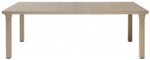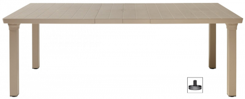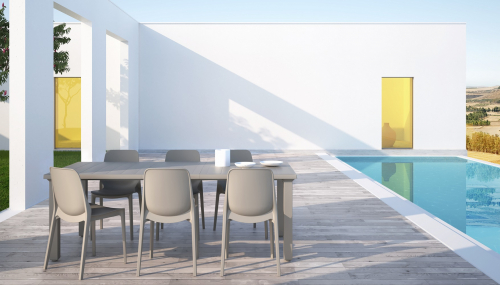 Per 3 с реечной столешницей из технополимера и алюминиевыми ножками с покрытием может быть увеличен в длину для столовой зоны на открытом воздухе. Сбалансированный размер и чистые линии этого стола привносят современную элегантность в наружные пространства. Расширение делает его очень универсальным, идеальным для всех официальных и неофициальных случаев.