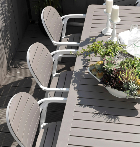 Элегантный раздвижной стол Alloro 140 Extensible со столешницей DurelTop предназначен для использования на улице. Он является дополнением к обеденному ряду Nardi и позволяет регулировать длину стола по мере необходимости в зависимости от того, сколько человек нужно разместить. Это отличная альтернатива обеденному столу для использования на свежем воздухе из тикового дерева или бруса, поскольку он придает тот же внешний вид благодаря современному и привлекательному дизайну.