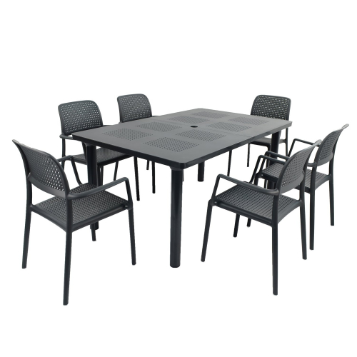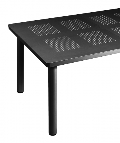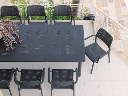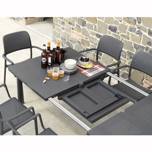 Раздвижной стол Libeccio с дизайном, который напоминает традиционную железную мебель, станет превосходным решением для обустройства разнообразных открытых пространств и помещений сферы Contract. Столешница украшена интересным узором из маленьких отверстий, которые последовательно повторяются, а каркас изготовлен из легкого и прочного трубчатого алюминия с круглым сечением.