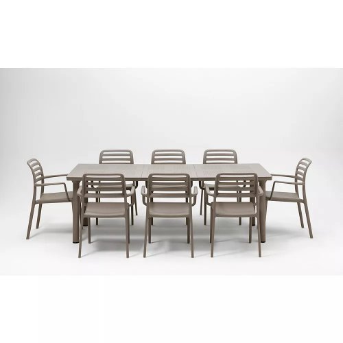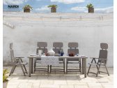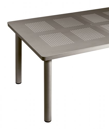 Раздвижной стол Libeccio с дизайном, который напоминает традиционную железную мебель, станет превосходным решением для обустройства разнообразных открытых пространств и помещений сферы Contract. Столешница украшена интересным узором из маленьких отверстий, которые последовательно повторяются, а каркас изготовлен из легкого и прочного трубчатого алюминия с круглым сечением.
