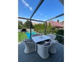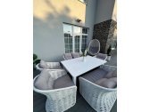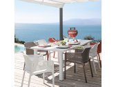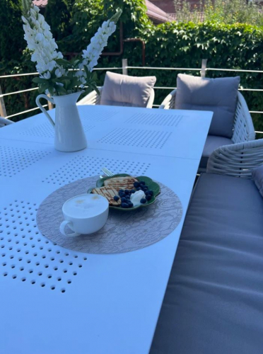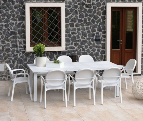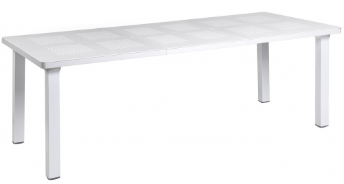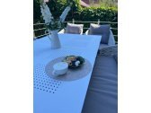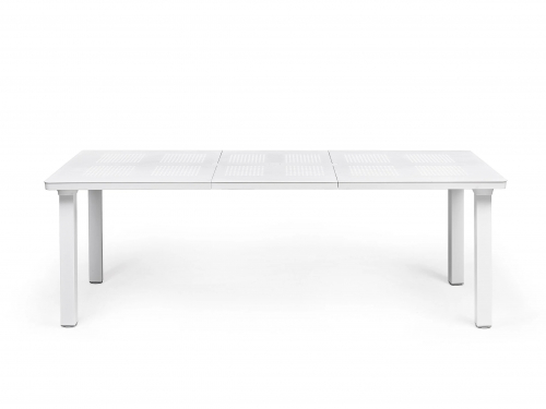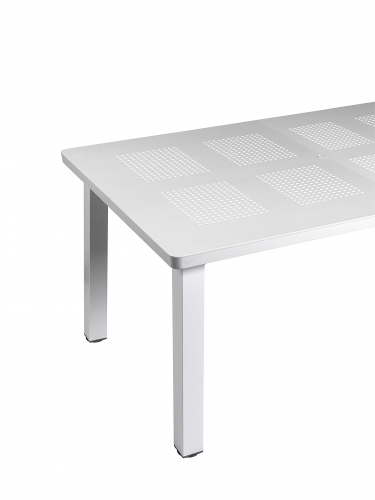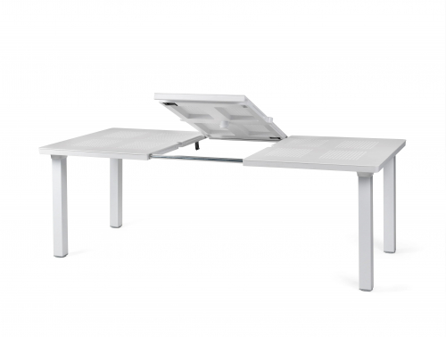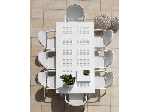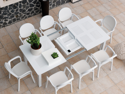 Levante – это прямоугольный раздвижной стол со столешницей DurelTop, предназначенный для использования на улице. Дизайн напоминает традиционную мебель из кованого железа. Столешница декорирована повторяющимся узором из мелких перфораций.