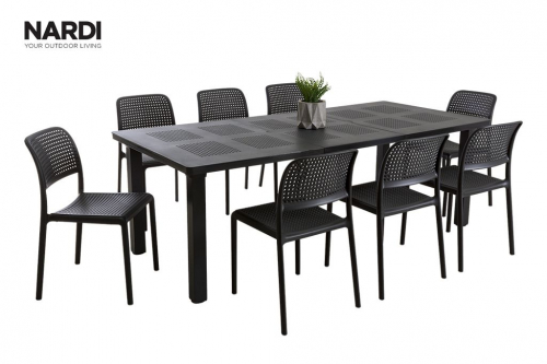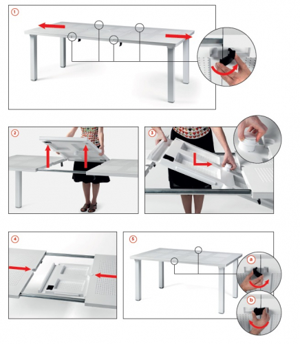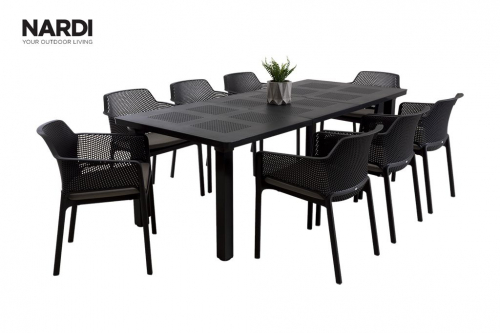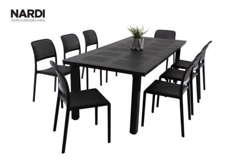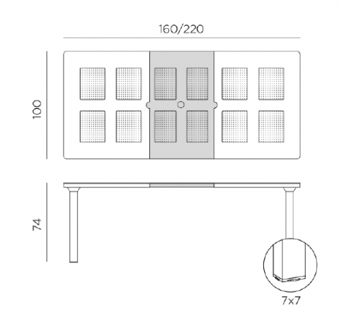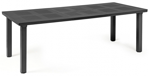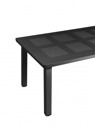 Levante – это прямоугольный раздвижной стол со столешницей DurelTop, предназначенный для использования на улице. Дизайн напоминает традиционную мебель из кованого железа. Столешница декорирована повторяющимся узором из мелких перфораций.