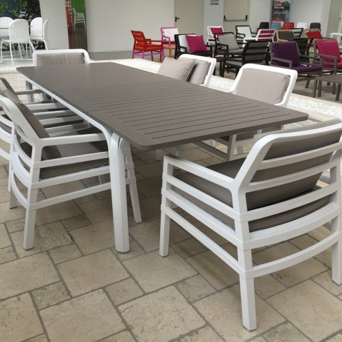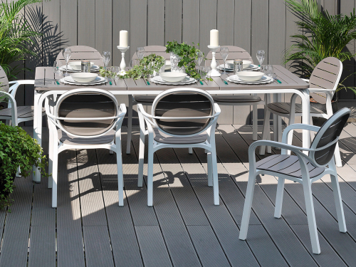 Элегантный раздвижной стол Alloro 210 Extensible со столешницей DurelTop предназначен для использования на улице. Он является дополнением к обеденному ряду Nardi и позволяет регулировать длину стола по мере необходимости в зависимости от того, сколько человек нужно разместить. Это отличная альтернатива обеденному столу для использования на свежем воздухе из тикового дерева или бруса, поскольку он придает тот же внешний вид благодаря современному и привлекательному дизайну.