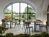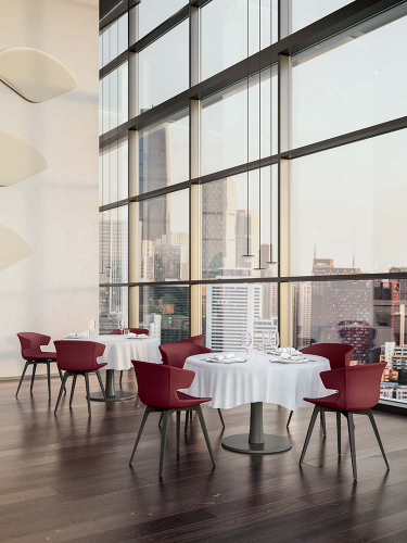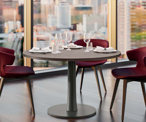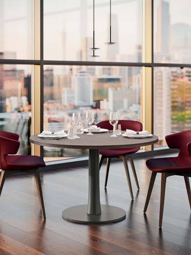 T06 – это классический круглый стол с современным дизайном, благодаря расширяющейся ножке, которая соединяет основание из окрашенного металла и столешницу. Столешница может быть изготовлена по индивидуальному заказу с добавлением меламина для придания столешнице большей компактности или из стекла для создания светового эффекта. Мягкие и округлые формы делают стол идеальным для сбора людей в изысканной атмосфере внутри жилых помещений, в зонах отдыха на крыше, в ресторанах и барах.