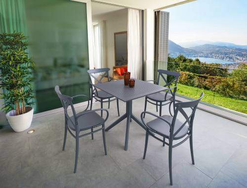Квадратный пластиковый стол Sky со столешницей из погодостойкого пластика и каркасом из стали (внутренний стержень).