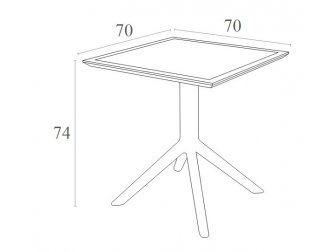 Квадратный пластиковый стол Sky со столешницей из погодостойкого пластика и каркасом из стали (внутренний стержень).