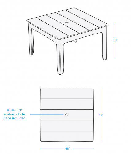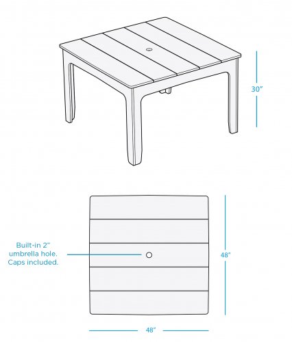 Обеденный стол Mainstay сделает отдых на свежем воздухе стильным и стильным. Квадратный обеденный стол не требует ухода, долговечен и имеет гладкую поверхность. Имеет в столешнице отверстие для зонта диаметром 2 дюйма (5.08 см).