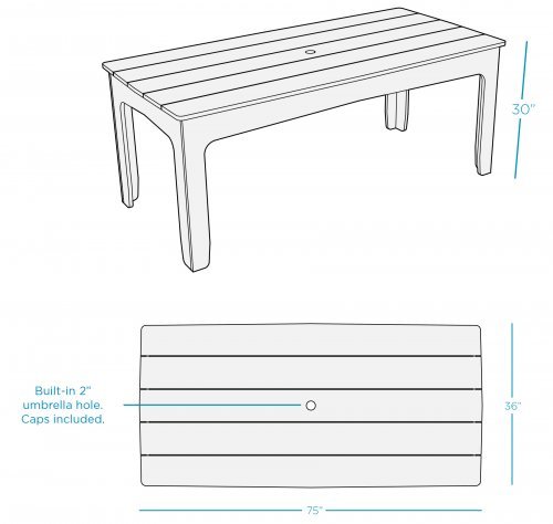 Прямоугольный обеденный стол Mainstay усиливает стильный вид открытого пространства, предназначенного для обедов и собраний на открытом воздухе. Прямоугольный обеденный стол отличается низкими эксплуатационными расходами, долговечностью и гладкой отделкой. Имеет в столешнице отверстие для зонта диаметром 2 дюйма (5.08 см).