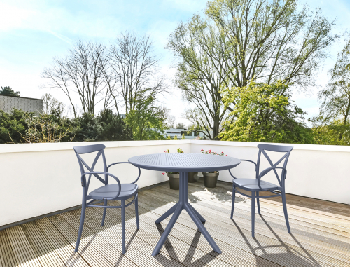 Круглый пластиковый стол Sky со столешницей из погодостойкого пластика и каркасом из стали (внутренний стержень).