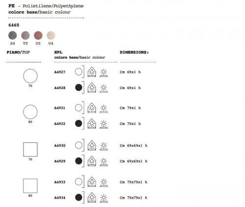 - Внимание! Для обеспечения устойчивости при вертикальном давлении модель должна быть стабилизирована в соответствии с пунктом 7.2 стандарта EN 1730:2012. Для этого в отверстие в нижней части основания необходимо насыпать инертный материал (например, высушенный песок). Количество материала будет варьироваться в зависимости от артикула: арт. A4927 - A4928 Ø70 см - 9 кг, арт. A4931 - A4932 Ø80 см - 12 кг, арт. A4930 - A4929 70x70 см - 15 кг, арт. A4933 - A4934 80x80 см - 27 кг.