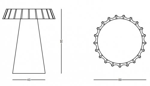 Философия простоты и элегантности воплощена в пластиковом столе Fizzz Medium. Его уникальная форма крышки, напоминающая крышку бутылки, гармонично сочетается с элегантным коническим пластиковым основанием.