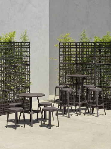 Combo 60 представляет собой стол с прямыми линиями и круглой столешницей. Его можно превратить в высокий барный стол путем добавления удлинителя. Столешница, которая механически вставляется в основание, также изготовлена из 100% перерабатываемого регенерированного полипропилена благодаря новой технологии, разработанной Nardi, которая обеспечивает идеальную ровность и интенсивное использование в течение длительного времени.