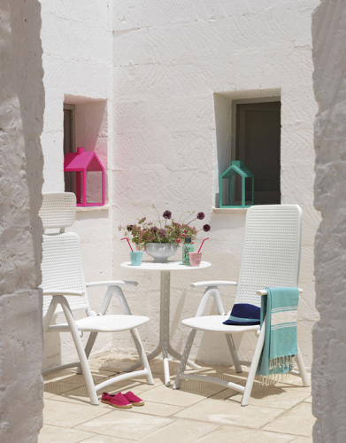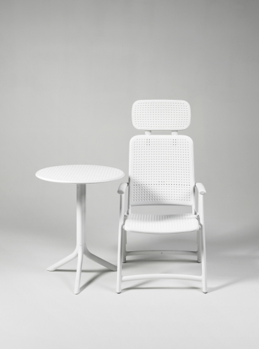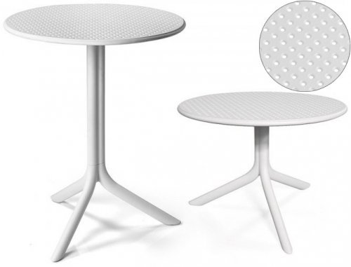 Инновационный стол Step – это модель, которая может превращаться из обеденного стола в журнальный путем смены опоры. Круглая столешница оснащена небольшими декоративными и функциональными отверстиями, которые обеспечивают очень хороший дренаж. Большая цветовая палитра отделок состоит из ярких и теплых оттенков, что позволяет подобрать максимально нужный вариант в соответствии с потребностями.