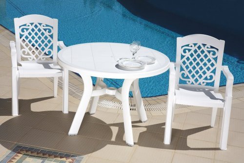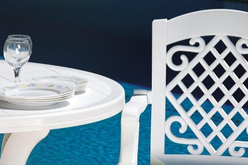 Круглый пластиковый стол Truva изготовлен из прочного погодостойкого пластика.