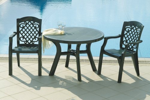 Круглый пластиковый стол Truva изготовлен из прочного погодостойкого пластика.