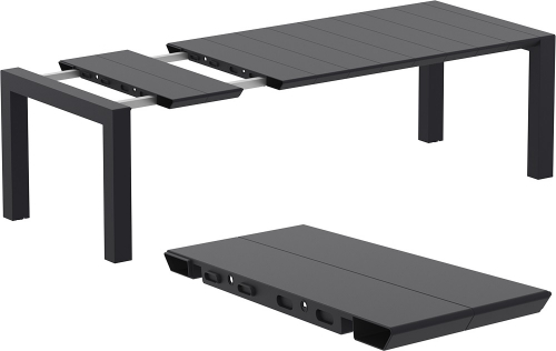 Модель оснащена раздвижным механизмом, который позволяет легко регулировать размер стола от 1800 до 2200 мм. Особенностью такого механизма является неплотное прилегание элементов друг к другу.
