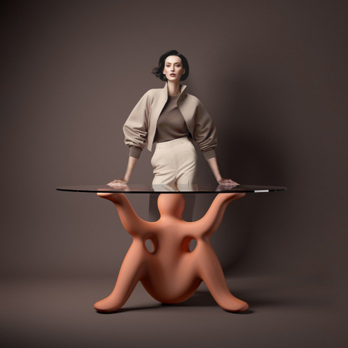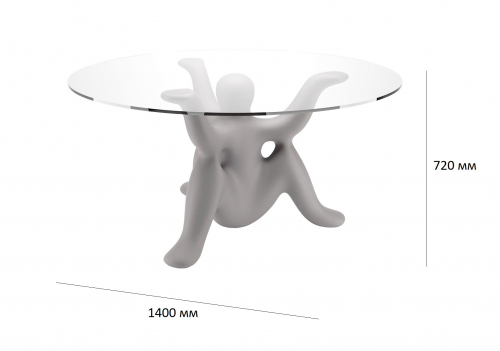 Qeeboo сотрудничает со всемирно известным создателем Филиппом Старком при создании коллекции обеденных столов и кофейных столиков. Helpyourself - это семья очаровательных гениев, которые следят за счастьем дома, выглядывая из-под столешницы. Эти гении с тремя ногами и тремя руками являются основой для стеклянной столешницы диаметром 1400 мм.
