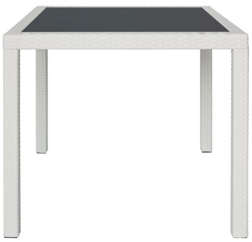 Квадратный обеденный стол выполнен из алюминия и оплетен искусственным ротангом (полиэтилен). Столешница выполнена из закаленного стекла. Данная модель подойдет для обстановки интерьера и открытых площадок частных домов и различных заведений.
