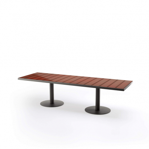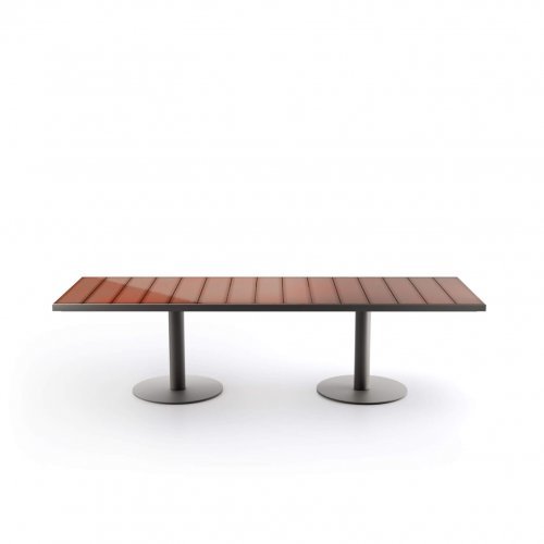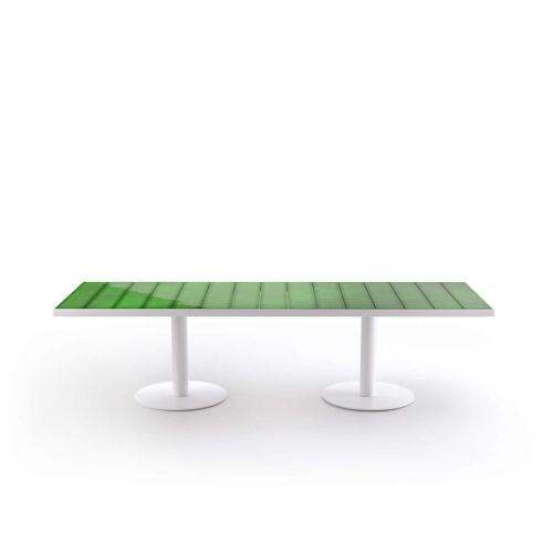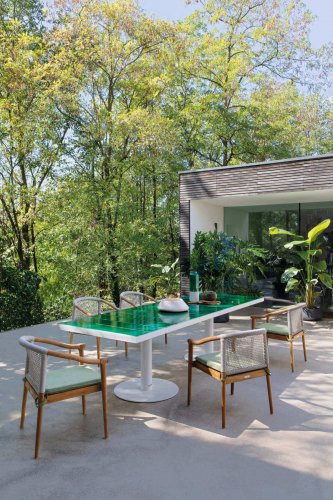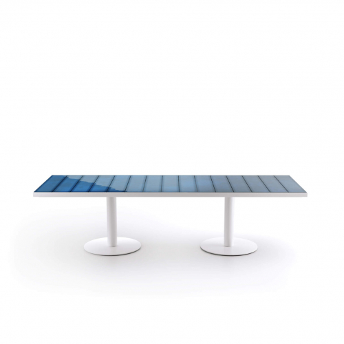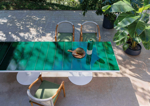 Изысканная элегантность стола Pantagruel передается через столешницу из глазурованной керамики приятных цветов и прочный алюминиевый каркас. Изысканное сочетание материалов, характерное для этого стола, придает пространству утонченный вид. Стол будет отлично смотреться на открытых пространствах и подойдет для обстановки летних кафе, террас ресторанов. Он станет ярким акцентом, привлекающим внимание.