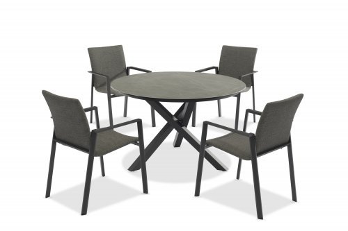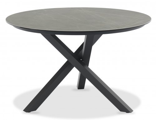 Обеденный стол Timra с неповторимым и лаконичным дизайном отличается своим каркасом. Конструкция изготовлена из трех квадратных алюминиевых ножек, скрещенных между собой. Такое интересное и необычное дизайнерское решение придает модели современный внешний вид. Столешница, изготовленная из керамического стекла, которое славится устойчивостью к интенсивным механическим воздействиям, обеспечивает долговечность и надежность модели. Он станет превосходным выбором для обстановки обеденных зон в летних кафе или на террасах ресторанов.