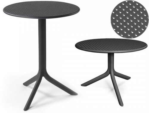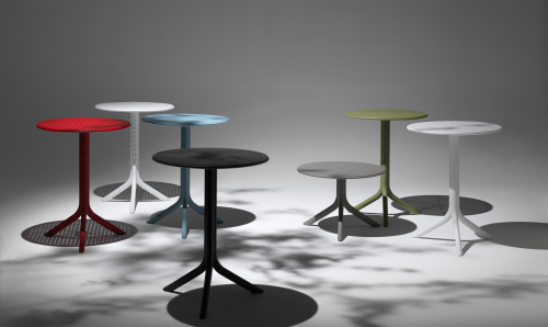 Инновационный стол Step – это модель, которая может превращаться из обеденного стола в журнальный путем смены опоры. Круглая столешница оснащена небольшими декоративными и функциональными отверстиями, которые обеспечивают очень хороший дренаж. Большая цветовая палитра отделок состоит из ярких и теплых оттенков, что позволяет подобрать максимально нужный вариант в соответствии с потребностями.