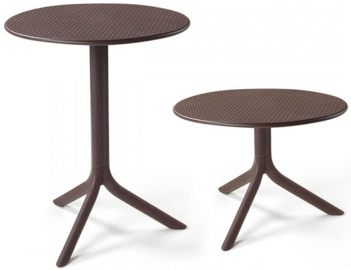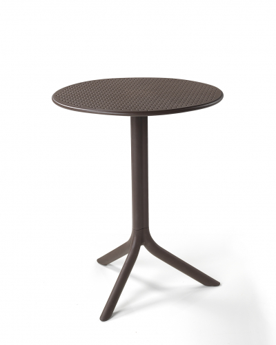 Инновационный стол Step – это модель, которая может превращаться из обеденного стола в журнальный путем смены опоры. Круглая столешница оснащена небольшими декоративными и функциональными отверстиями, которые обеспечивают очень хороший дренаж. Большая цветовая палитра отделок состоит из ярких и теплых оттенков, что позволяет подобрать максимально нужный вариант в соответствии с потребностями.
