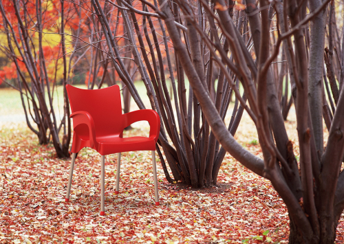 Пластиковое кресло Romeo с корпусом из перерабатываемого полипропилена и ножками из анодированного алюминия.