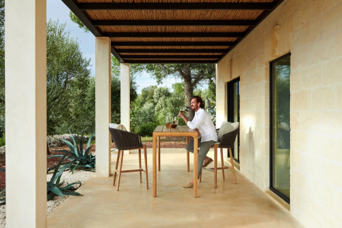 - Каркас выполнен из тика. Поскольку Tribu не идет на уступки в отношении качества, то использует только тщательно отобранный тик, который собирают в соответствии с самыми строгими экологическими стандартами на трех самых качественных индонезийских плантациях на востоке острова Ява. Тик классифицируется как самая премиальная древесина на планете и, следовательно, наиболее подходящая порода для наружного применения. Помимо красоты, тик обладает некоторыми природными свойствами, которых нет у других пород дерева. Это чрезвычайно прочный, стабильный, водостойкий и атмосферостойкий материал. Это связано с высоким содержанием натуральных масел, которые при минимальном поглощении влаги, придают древесине большую стабильность. Кроме того, древесина чрезвычайно устойчива к грибкам и атакам паразитов и насекомых.