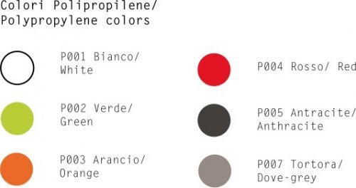 Возможные цвета спинки и подлокотников: P001 белый, P002 зеленый, P003 оранжевый, P004 красный, P005 антрацит, P007 тортора.