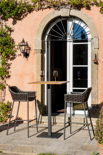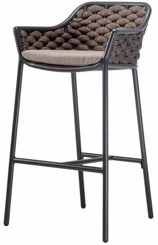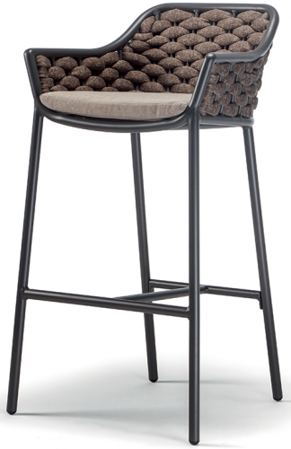 Барное кресло Panama сочетает в себе строгие линии алюминиевого каркаса и мягкое плетение резинового каната с покрытием из олефина. Сиденье комфортно благодаря подушке с чехлом, устойчивым к пятнам и ультрафиолетовому излучению. Барные кресла подойдут для барных стоек и столов в помещениях кафе, баров и ресторанов и на открытых площадках.