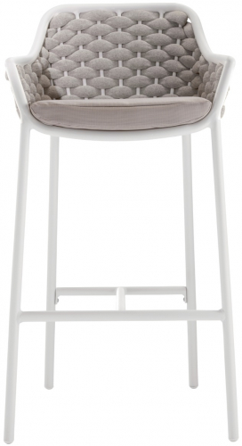 Барное кресло Panama сочетает в себе строгие линии алюминиевого каркаса и мягкое плетение резинового каната с покрытием из текстилена. Сиденье комфортно благодаря подушке с чехлом, устойчивым к пятнам и ультрафиолетовому излучению. Барные кресла подойдут для барных стоек и столов в помещениях кафе, баров и ресторанов и на открытых площадках.