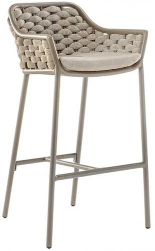 Барное кресло Panama сочетает в себе строгие линии алюминиевого каркаса и мягкое плетение резинового каната с покрытием из текстилена. Сиденье комфортно благодаря подушке с чехлом, устойчивым к пятнам и ультрафиолетовому излучению. Барные кресла подойдут для барных стоек и столов в помещениях кафе, баров и ресторанов и на открытых площадках.