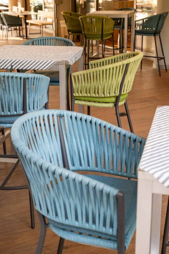 Нежная текстура спинки - ключевая особенность коллекции Gaia-Belize. Именно гладкость шнура в диалоге с линиями рамы придает всем изделиям ощущение легкости и элегантности.