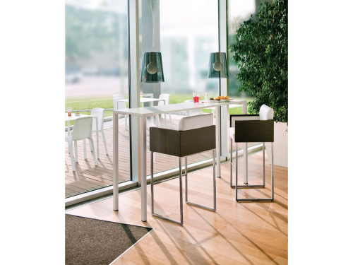 Box имеет строгие формы и использует различные материалы, такие как дерево и металл, которые сочетаются с мягкостью обивочного материала, создавая полную и многофункциональную коллекцию. Барный стул с мягким сиденьем максимально комфортное и эргономичное. Ножки в виде полозьев придают дизайну этого барного стула современность, а материал из которого они изготовлены обеспечивают долгий срок службы.