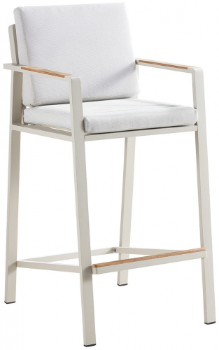 Прочная конструкция мебели изготовлена из алюминия со вставками из тикового дерева. Ансамбль сохраняет яркий внешний вид в нейтральных тонах, который прекрасно впишется во многие помещения, как частные, так и коммерческие. Все дополняется толстыми подушками на сиденьях и спинке, благодаря которым поддерживается высочайший уровень комфорта и расслабления.