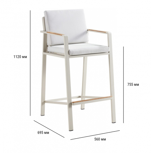 Мебельный гарнитур Higold из коллекции Nofi рекомендуется для вечеринок на свежем воздухе, в саду или на террасе. Набор из четырех барных кресел с подушками и подлокотниками объединен с барным столом со столешницей из тикового дерева. Комплект отличается оригинальностью, минималистичным дизайном, который привлечет внимание многих любителей современных тенденций, а утилитарный аспект порадует любителей активного отдыха.