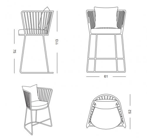 Каждый элемент разработан и создан для защиты от атмосферных воздействий. Прочность, универсальность и легкость: вот характеристики, которые делают эту коллекцию идеальной для открытых пространств в самых разнообразных современных жилых помещениях. Каркас выполнен из железа, обработанного и окрашенного эпоксидным порошком для использования во внешней среде, выдерживает любые атмосферные воздействия даже в морской среде. Мебель дополнена удобными подушками из водоотталкивающей и пятностойкой ткани, идеально подходящей для самых престижных и эксклюзивных мест. Чехлы на подушки полностью съемные и изготовлены из ткани, устойчивой к ультрафиолетовому излучению, хлорированию и соленой воде, что позволяет сочетать долговечность и комфорт с простотой очистки. Чехлы подушек могут быть выполнены из тканей категорий C, D, E, F, G, S, а также из собственной ткани клиента. Посмотреть палитру материалов Samuele Mazza.