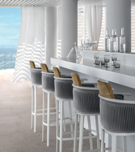 Маленькое кресло, разработанное Patrick Norguet, "растет" и демонстрирует новый облик. Ethimo продолжает стремиться экспериментировать с новыми эстетическими сочетаниями для Nicolette: так обеденное кресло, созданное Patrick Norguet, превращается в элегантное, удобное барное кресло.