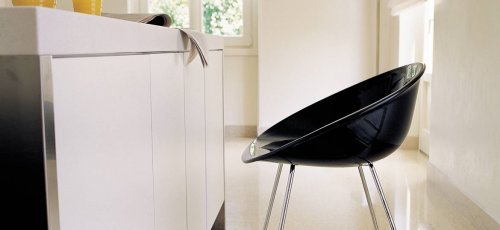 Полубарное кресло Gliss черпает вдохновение из культовых кресел пятидесятых годов. Кресло имеет уютную, эргономичную форму и отличается характерным отверстием в корпусе. Комфорт и функциональность, обеспечивают изогнутые подлокотники, которые охватывают тело сидящего и придают ощущение защищенности. Материалы, используемые в изготовлении кресла, и каркас с подножкой в виде полозьев обеспечивают долговечность модели и максимальное удобство.