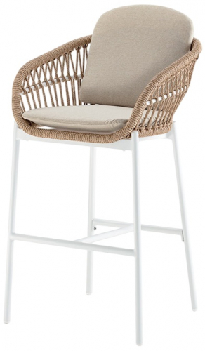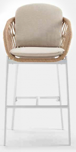 Уличное барное кресло Elba выполнено из окрашенного алюминия со спинкой и подлокотниками, покрытыми плетением синтетического каната Wintech (роупа), создающего красивый рисунок. На сиденье и спинке съемные подушки из олефина с набивкой из быстросохнущей пены. Это выское кресло идеально подходит к частным и общественным открытым пространствам, подчеркивая их современность и стиль.