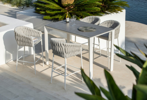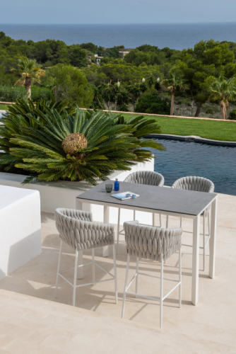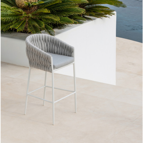 Барное кресло Fortuna имеет легкий и устойчивый к коррозии алюминиевый каркас с порошковым покрытием и уникальное объемное плетение из полипропиленового волокна. Плетение прочное, обеспечивает превосходный комфорт и дизайнерский вид. Подушка из вспененного материала Quick Dry, покрытая тканью Sunbrella, завершает образ.