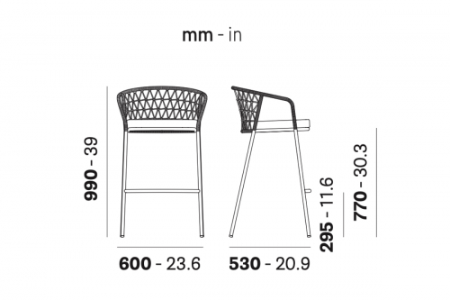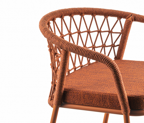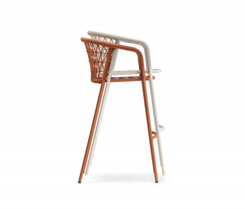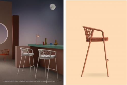 Дизайн коллекции Panarea был навеян картиной средиземноморского побережья, с террасой с видом на море и легким бризом. Отличительной особенностью данного барного кресла является полипропиленовый канат, сотканный вручную в Италии, который оплетается вокруг стального каркаса. Подушка сиденья, приятная на ощупь, набита пенополиуретаном, покрыта тканью, изготовленной из той же пряжи, что и канат. Подножка, расположенная на передней части каркаса барного кресла, делает его штабелируемым. Данная модель подходит для использования как на открытых площадках, так и для закрытых пространств.