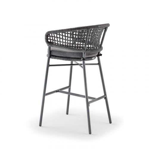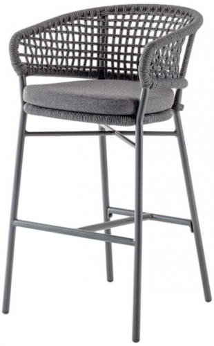 Барное кресло Atol имеет каркас из алюминия, оплетенный синтетическим канатом (роуп), и мягкую подушку на сиденье из олефина, устойчивого к пятнам и ультрафиолетовому излучению. Кресло с высоким сиденьем обеспечивает расслабление "на ходу" и подходит для оживленного образа жизни.