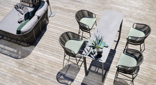 Tibidabo - коллекция садовой мебели с переплетением из синтетического волокна в ручном исполнении и рамой из окрашенного алюминия. Такая простая и в то же время элегантная мебель может украсить террасы ресторанов, отелей или вашего дома. Идеально подходит для внутреннего и наружного применения.