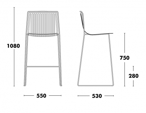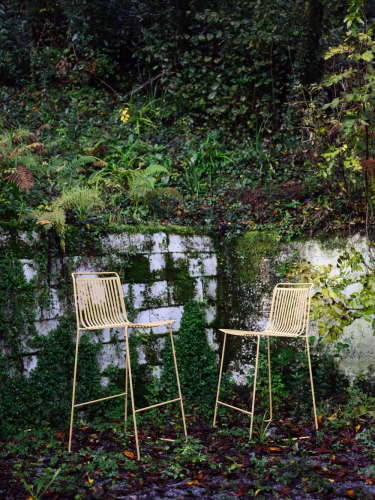 Зазор между стальными рейками является сутью коллекции Alo Outdoor. Сочетание стального прута диаметром сечения 12 мм и плоских стальных лент толщиной 3 мм, которые кажутся парящими, придает серии неизбежное ощущение легкости, элегантности и простоты. Именно эта особенность делает коллекцию идеальным местом для отдыха на террасах или в садах.