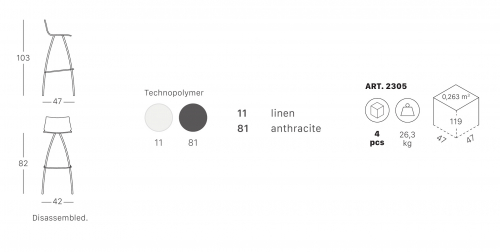 Day - это барный стул с ножками из стали и пластиковым сиденьем от дизайнеров Centro Stile Scab.